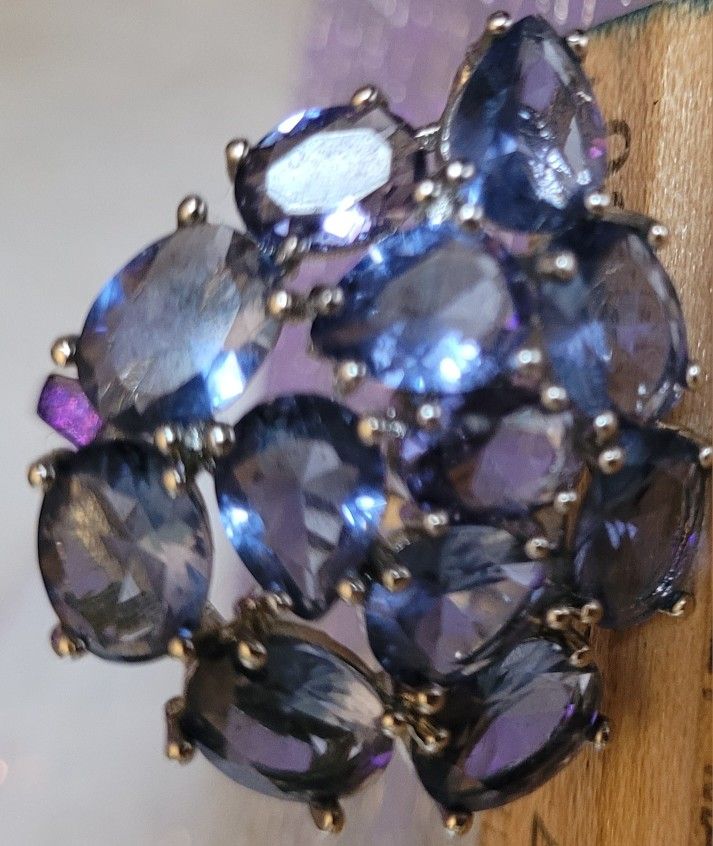 New HUGE 925 Sterling Tanzanite Cluster Ring SZ .8.25