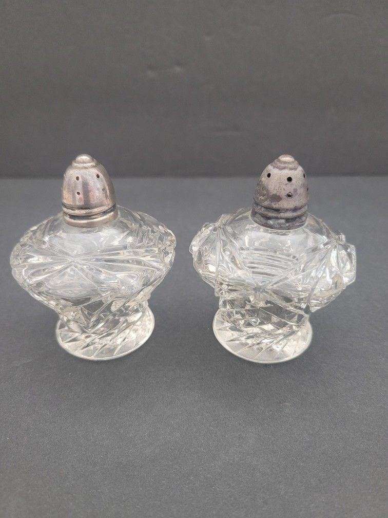 Vintage Glass Lidded Salt and Pepper Shaker Set