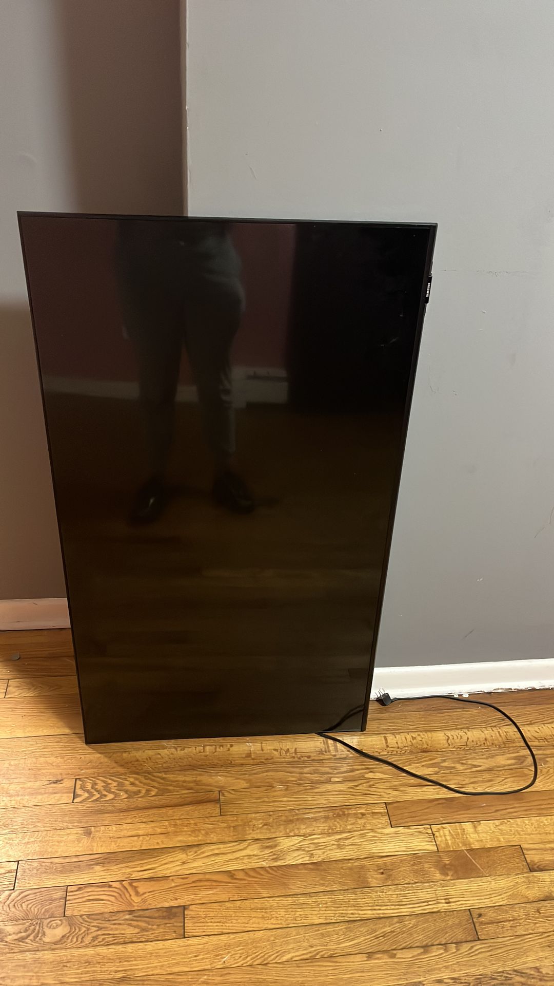 Practically brand new Samsung TV 55 inch comes with the remote and legs nothing’s wrong with it. Everything works perfectly fine no scratches clear screen no dense.