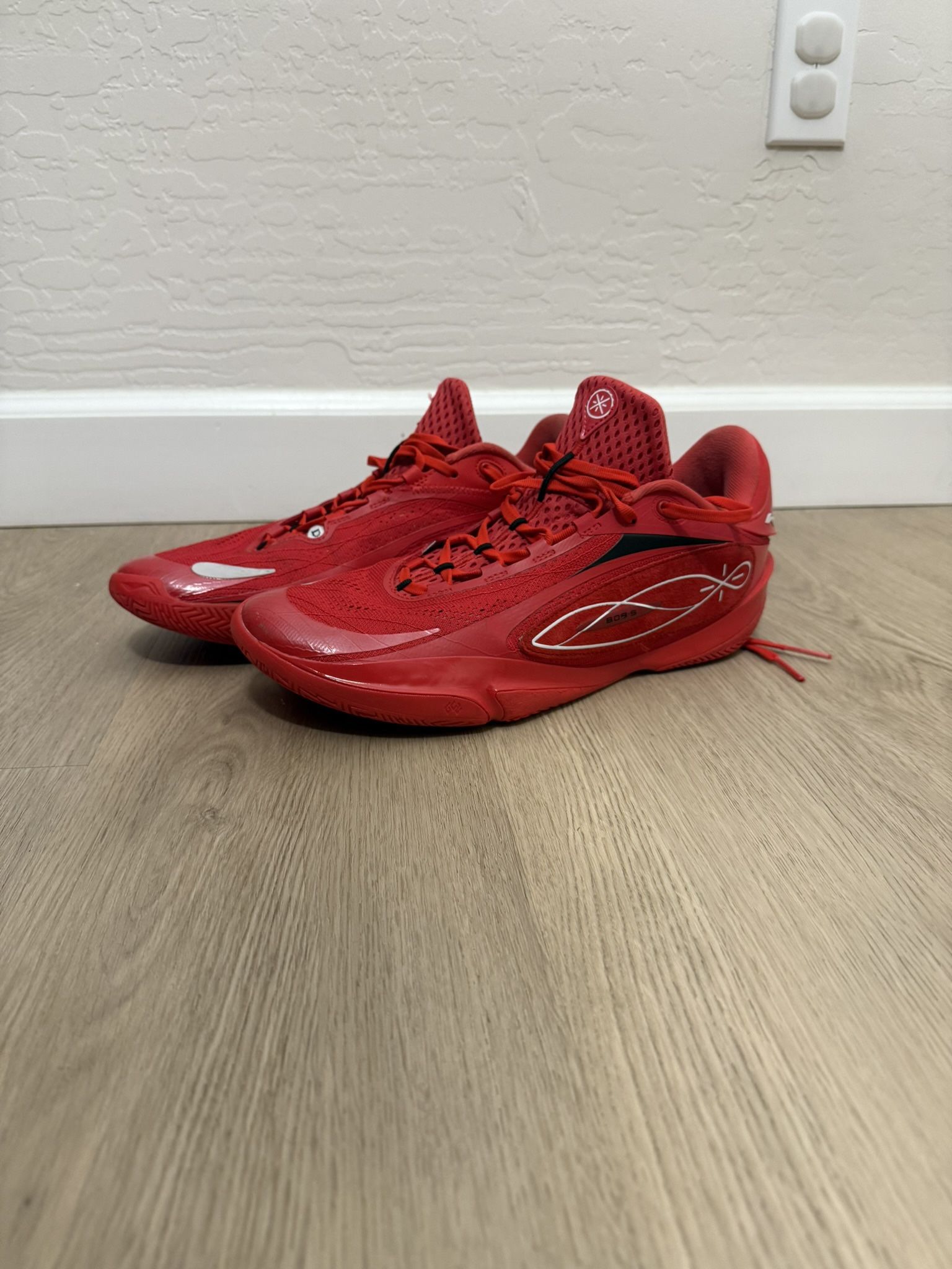 These are lightly worn. I wore them for indoor only, maybe 4 games during our men’s league. No scratches or damage anywhere. Outsole tread is mint. Size 12