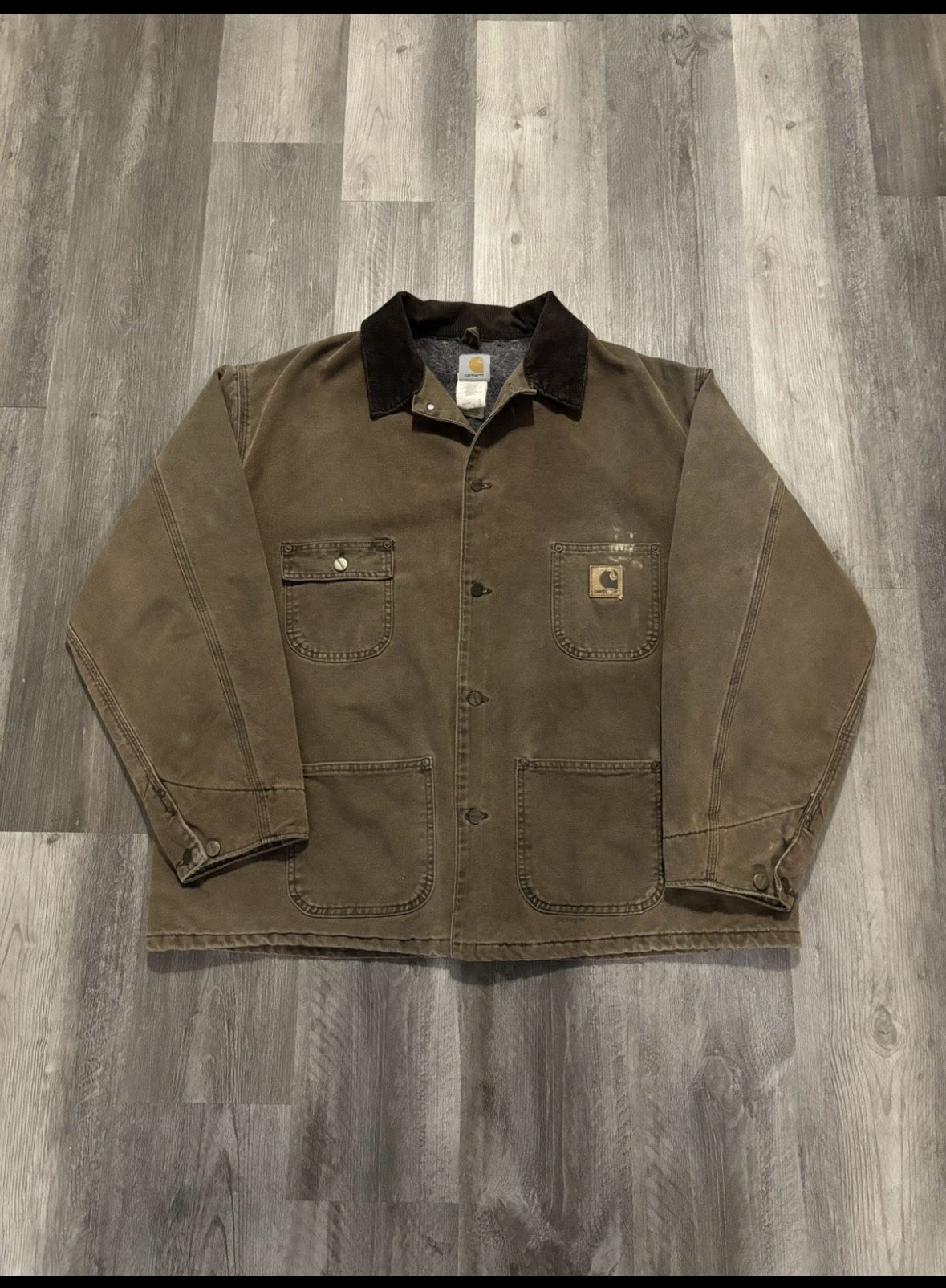 Vintage Carhartt Blanket Lined Chore Coat 2XL Brown Duck Canvas Jacket Made USA