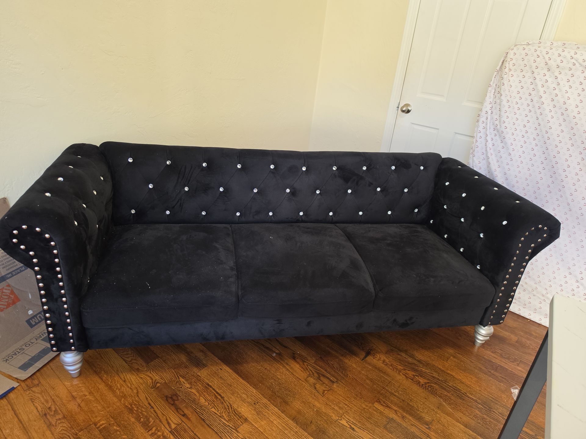 Black couch with gem stones