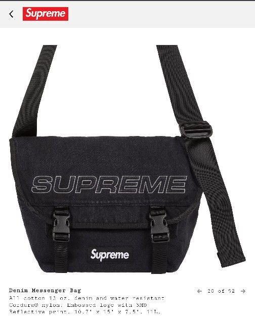 Supreme Black Nylon Denim Messenger Bag Large Logo Shoulder Bag M