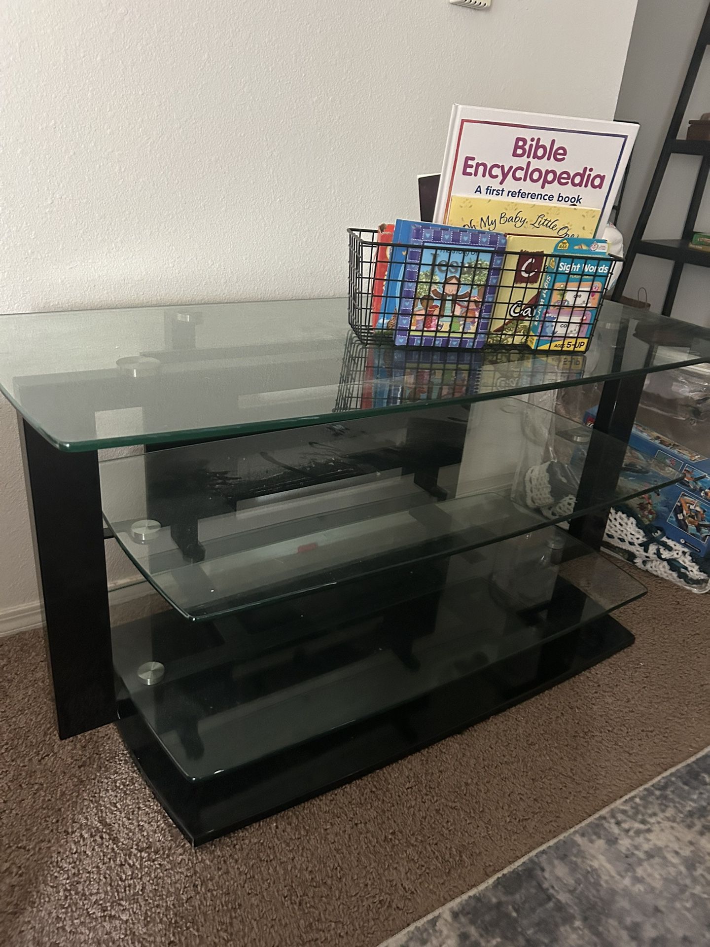 Glass entertainment, set coffee table, black accents. Moving and not everything can go no longer needed. Great condition.
