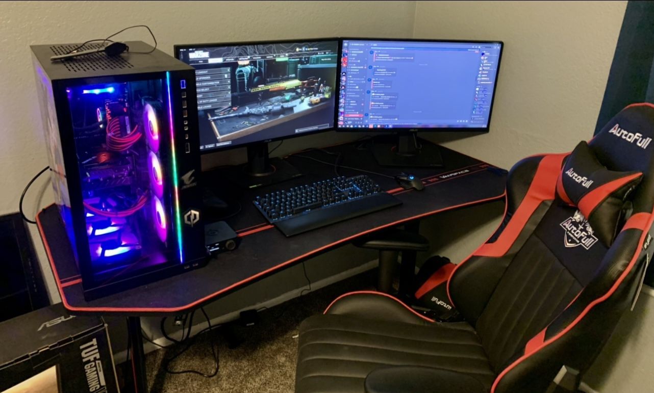 For sale Desktop Gaming System Everything in the picture is included. Desktop, double monitor, table, chair, headset. All in great condition. $4500 Ryzen™ 9 5950X 3.4GHz [4.9GHz Turbo] 16 Cores/ 32 Threads 72MB Total Cache 105W Processor HDD: 512GB ADATA XPG ASX6000LNP PCIe NVMe + Seagate 2TB SATA III Hard Drive Combo (Combo Drive) FAN: Thermaltake Floe Riing RGB 360mm Premium Edition Liquid CPU Cooling System w/ Copper Cold Plate MEMORY: 16GB (8GBx2) DDR4/3000MHz Dual Channel Memory (HyperX Predator RGB MOTHERBOARD: GIGABYTE X570 AORUS MASTER ATX w/ WiFi 6, RGB, Intel LAN, 3 PCIe x16, 2 PCIe x1, 6 SATA3, 3 M.2 SATA/PCIe POWERSUPPLY: 1250 Watts - Enermax EDT1250EWT MaxTytan Series 80 PLUS Titanium certified Full Modular Active PFC Power Supply ASUS TUF Gaming GeForce RTX™ 3070 8GB GDDR6 Video Card (Ampere) [VR Ready]