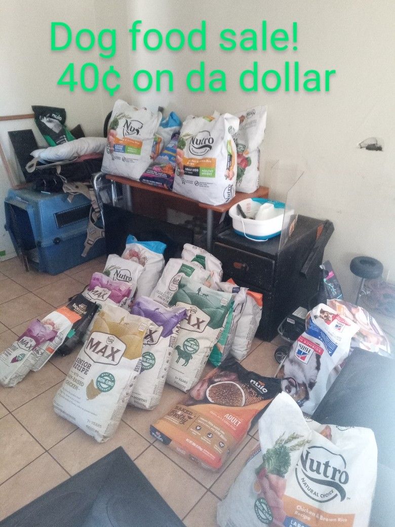 I've got dog food all kinds of different kinds and flavors I've got cat food I got 10 lb bags I've got 30 lb bags I've got a lot of dog food I'm selling this stuff at rock bottom prices come by and get it while you can Tempe area pick up Guadalupe and rural p