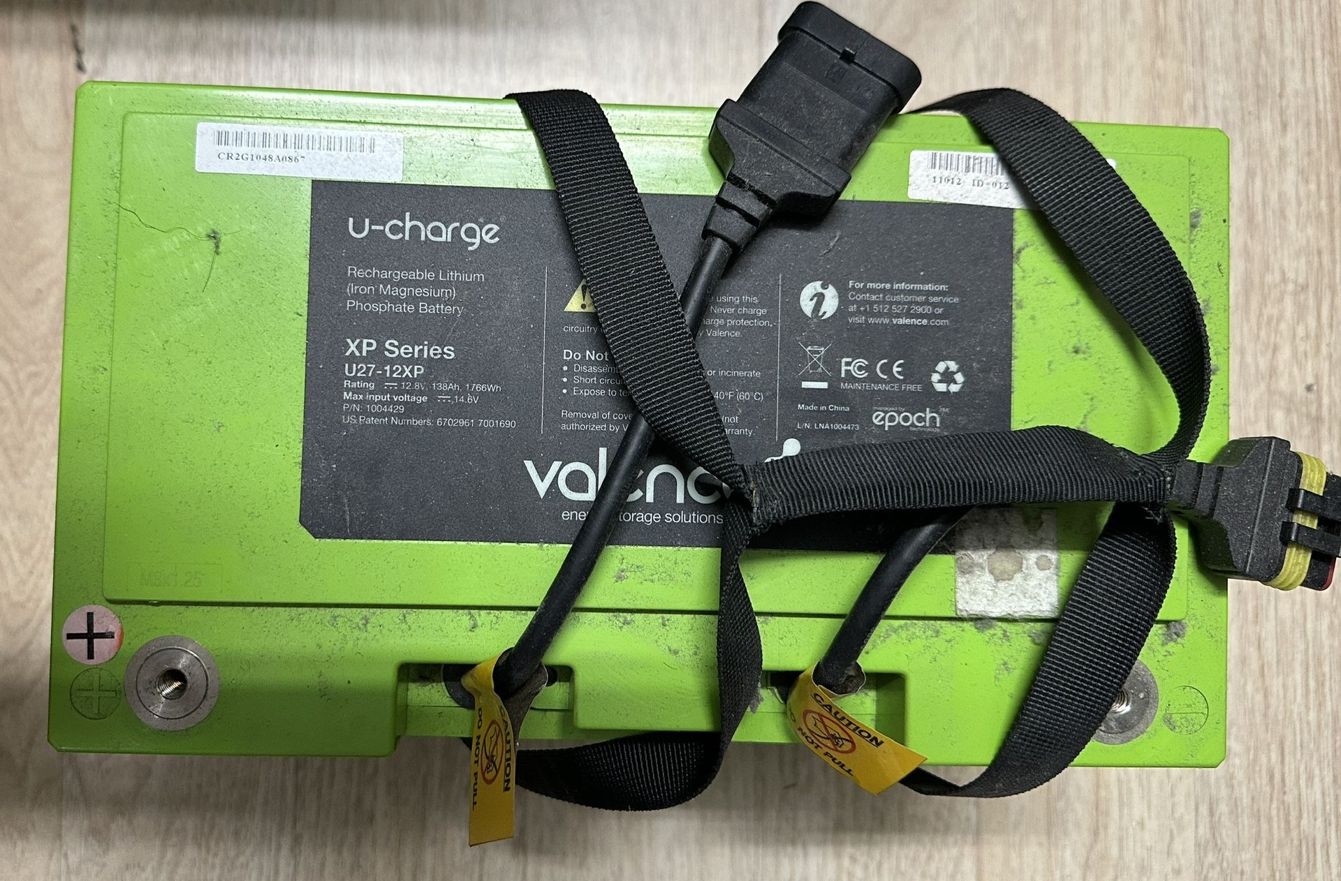 12.8V Green 138ah Black 130ah Still pulling near capacity. Group size 27. Good for 2nd battery system.