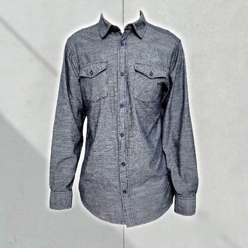Burnside TunerCult Mens Blueish-Gray Chambray Long-sleeved Button-Up Dress Shirt
