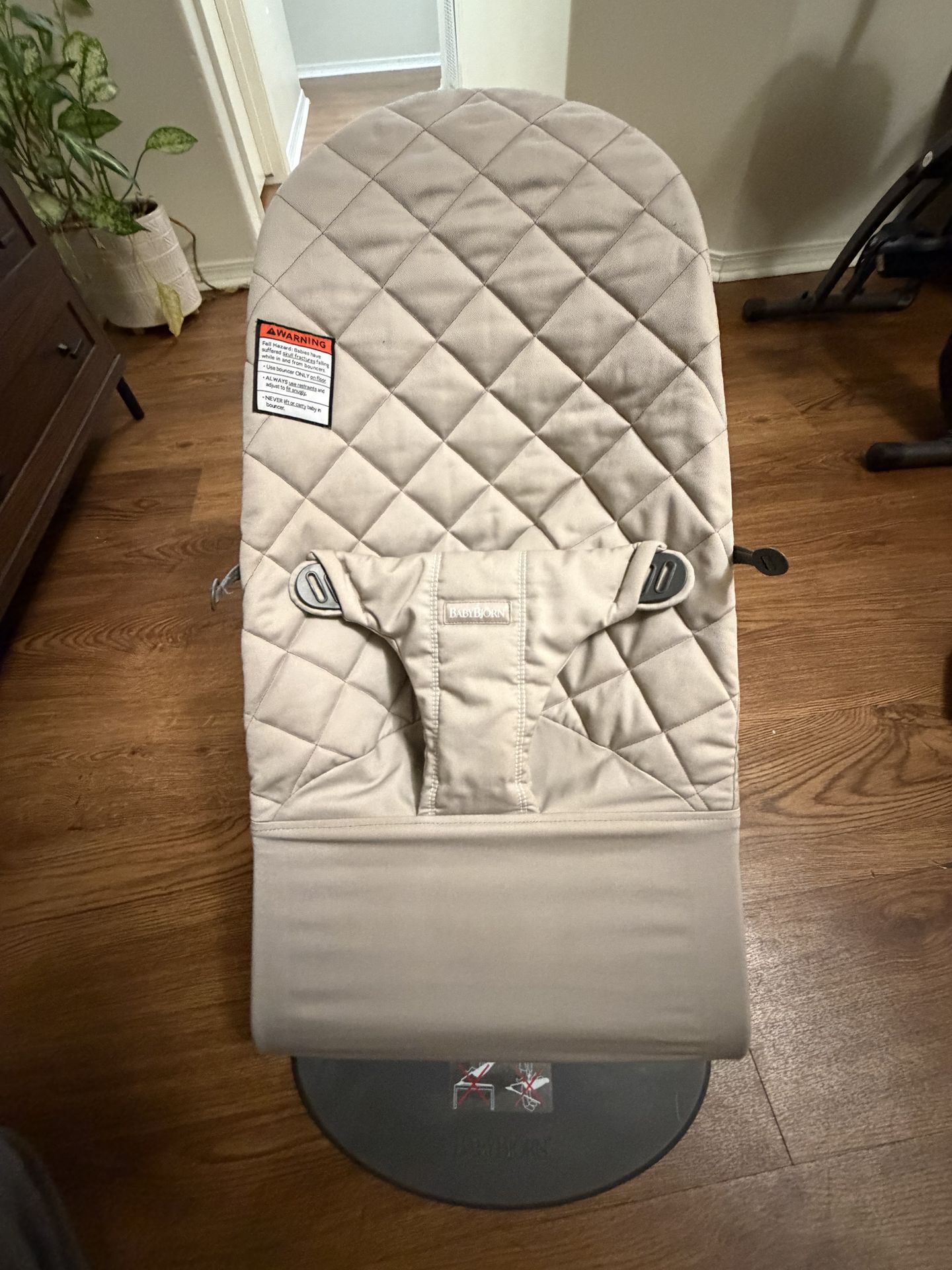 BabyBjörn Bouncer Bliss, Sand Gray, Woven, Classic Quilt | 2-in-1 Adjustable Baby Bouncer Seat and Toddler Chair, Newborn to Toddler (8-29 lbs), 4 Positions, Lightweight & Portable