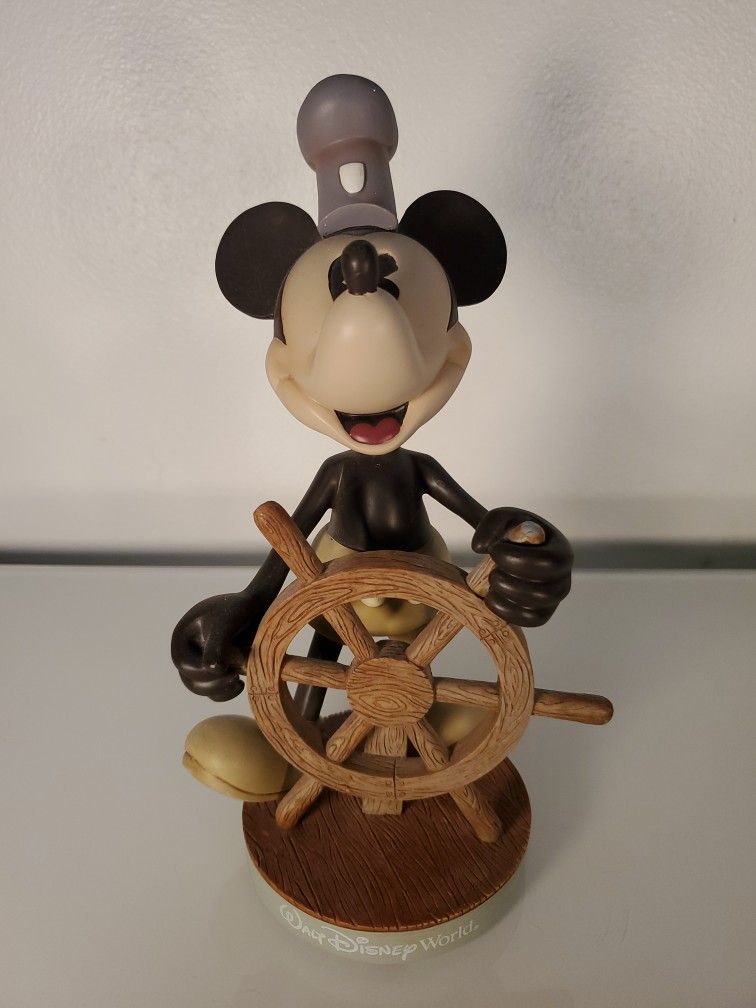 Vintage Walt Disney Mickey Mouse Steamboat Willie Bobblehead 10" Retired