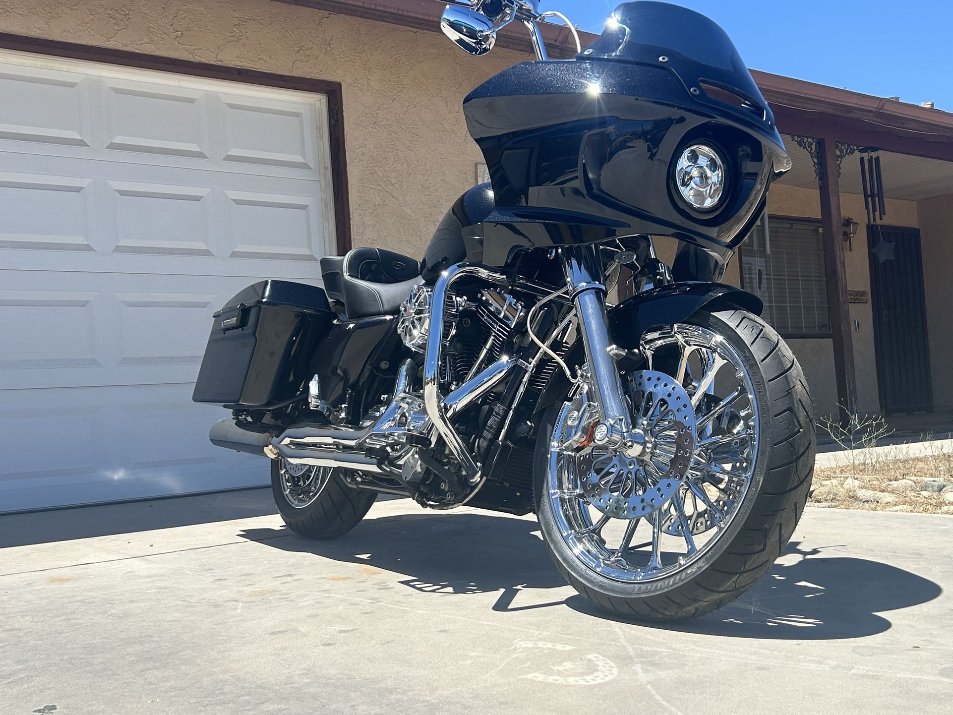 2012 road king with advan Black st fairing. Custom triple diamond coat black paint in perfect condition. 120r motor with fueling cam plate, oil pump and lifter and a red shift 657 cam with S&S roller rockers have receipts to prove it D&D borzilla 2into1 exhaust. Thundermax ecm with custom map for this set up Dark horse comp and evolution industries black ops race clutch basket. Legends axeo in front forks with rswd piggy back rear shocks Thrashin floor boards and bars with koso digital gauge. Sandleman road sofa seat This bike is done right and is a rocket. 6000 miles on the build Bike shows 16,800 miles in total. Pink in hand with current Registration till July 2026