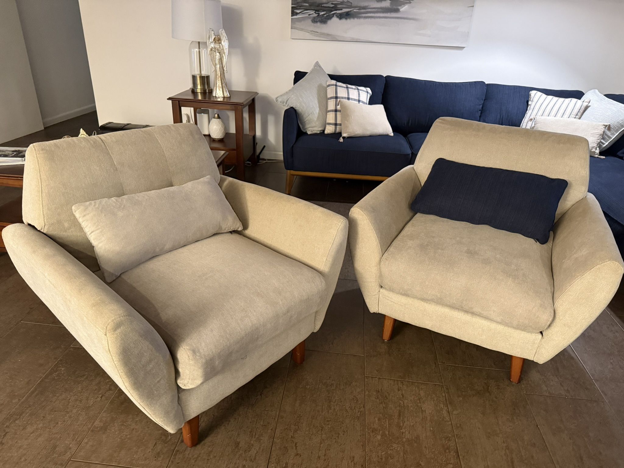 Polyester Fabric Chair Is a stylish addition to any modern living space. It features a mid-century design trend with its sleek and clean lines. Dimensions 35wX 33.5hx35l $60 usd each one $120 usd