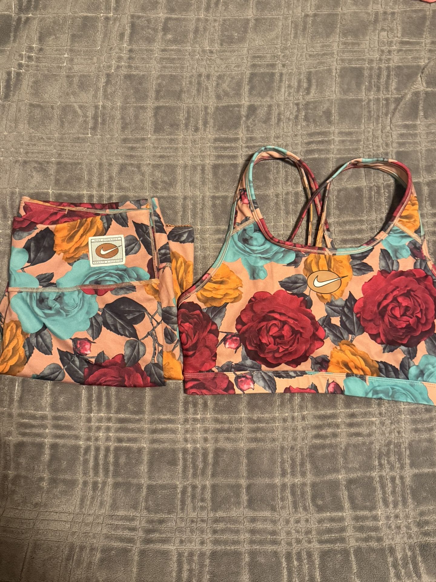 This is a Nike One Icon Clash floral printed sports bra and 7" training shorts set. Size M Super cute
