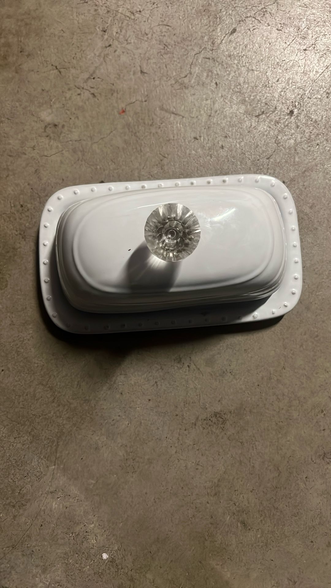 White Butter Dish with Crystal Knob by Simple