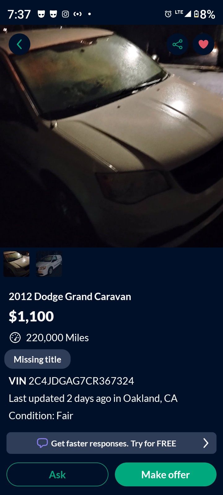 Needs a key fob 200$ runs good hnu Serious inquiries only, please. Flat back tire just need pumped up or spare is good under van being sold as is with only bill of sale.. it does run inside 8/10 outside 7/10 . $700.00 may be willing to trade
