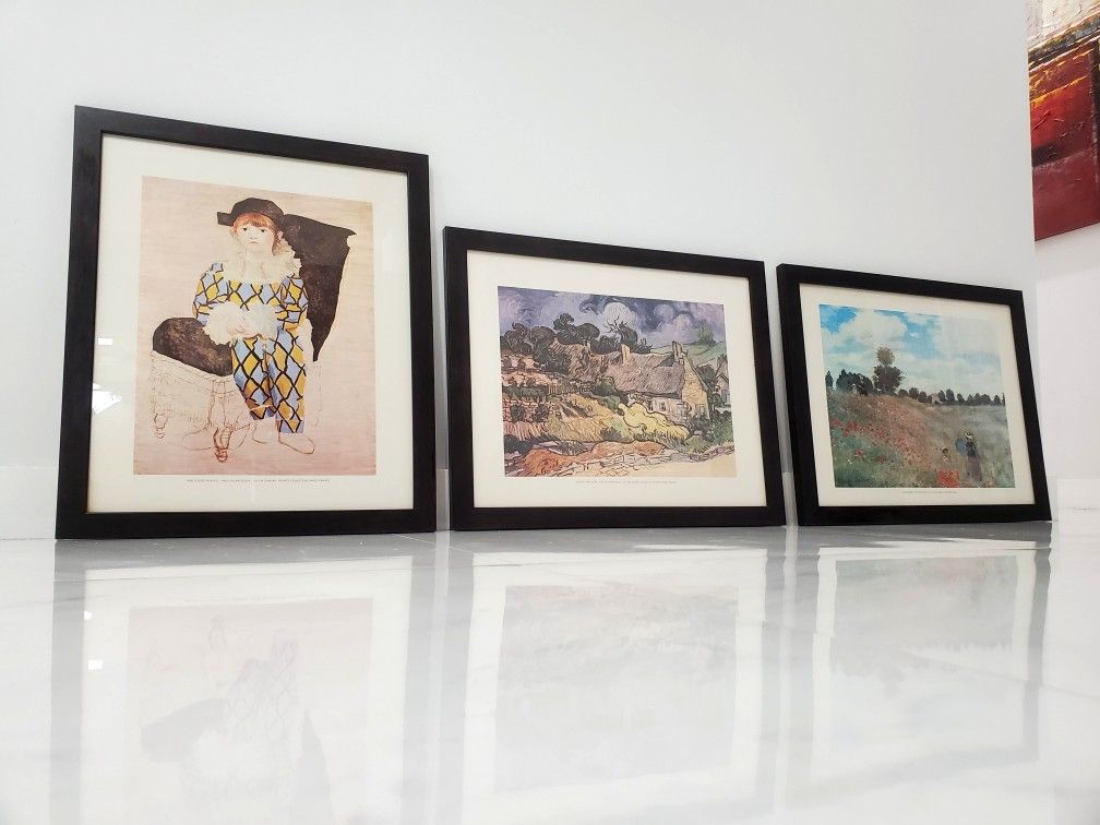 Set of three beautiful and perfectly framed prints. Paris - France. Pablo Picasso, Vincent Van Gogh, Claude Monet. $50 In Total.
