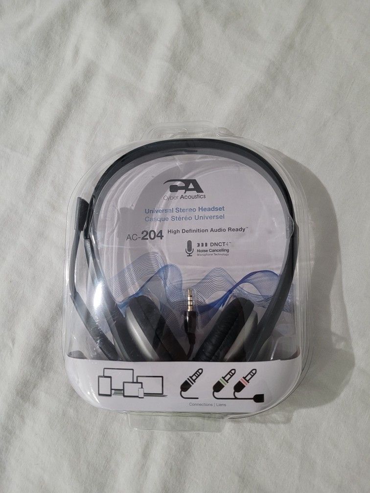 Stereo headset with noise cancelling mic element. 4 barrel 3.5 mm plug. Adjustable headband. Ambidextrous boom. I have 3 available. Brand new never opened.