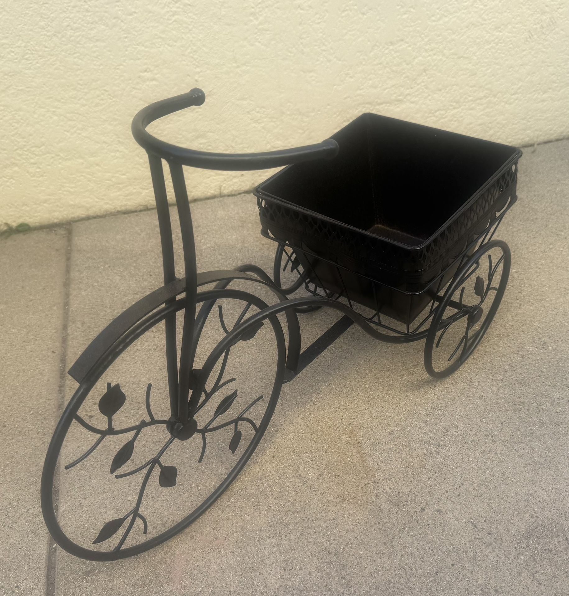 Very Cute Black Metal Bicycle Flower Pot. Very good condition. Length: ~ 23” Depth: ~ 9 ½” Height: ~ 15” Price: $45 CASH ONLY
