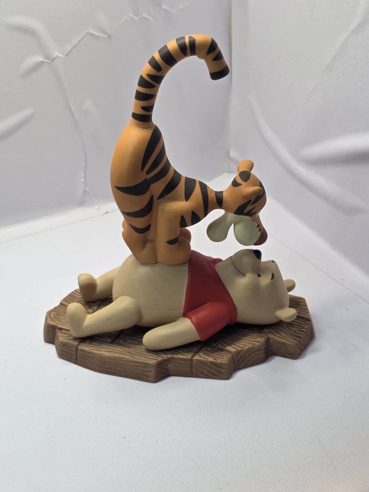 Disney Pooh & Friends, Friends Put a Bounce in Your Heart Figurine Pooh & Tigger. This delightful figurine features two of Disney's most beloved characters, Pooh and Tigger. Crafted by Walt Disney Art Classics, this limited edition Friends Put a Bounce in Your Heart figurine is a must-have for any Disney collector. Standing at approximately 6 inches tall, this charming collectible captures the playful spirit of Pooh and Tigger as they bounce together in joy. Made in Thailand and featuring Winnie the Pooh as the featured franchise, this Tigger figurine is the perfect addition to any Disneyana collection. With no modifications, this figurine is in excellent condition and ready to be displayed proudly. Add some Disney magic to your home with this adorable Pooh and Tigger figurine. This is a great Disney piece to add to your collection it is retired and limited edition Winnie the Pooh and friends. Please look at all the pictures. The color and detail are amazing it is new in