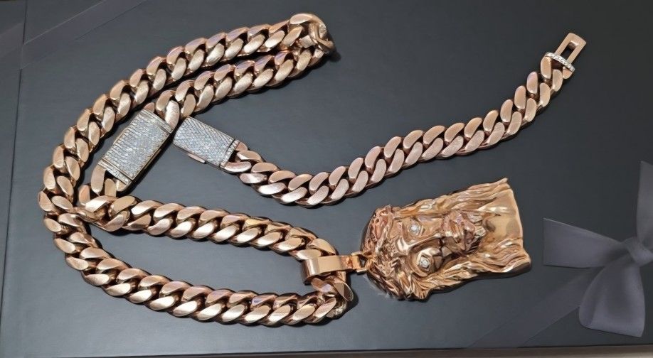 Rose gold Cuban set Heavy chain 600 grams Bracelet 200 grams