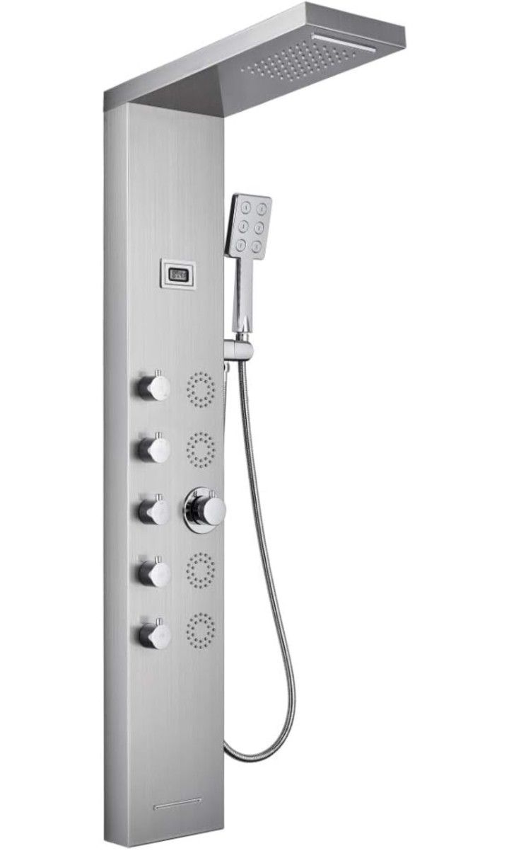 SUS304 Stainless Steel 5-IN-1 Shower Column With 4 Body Massage Jets, Rainfall & Waterfall Shower, Handheld Shower, Bathtub Spout 5 In 1 Shower Panel