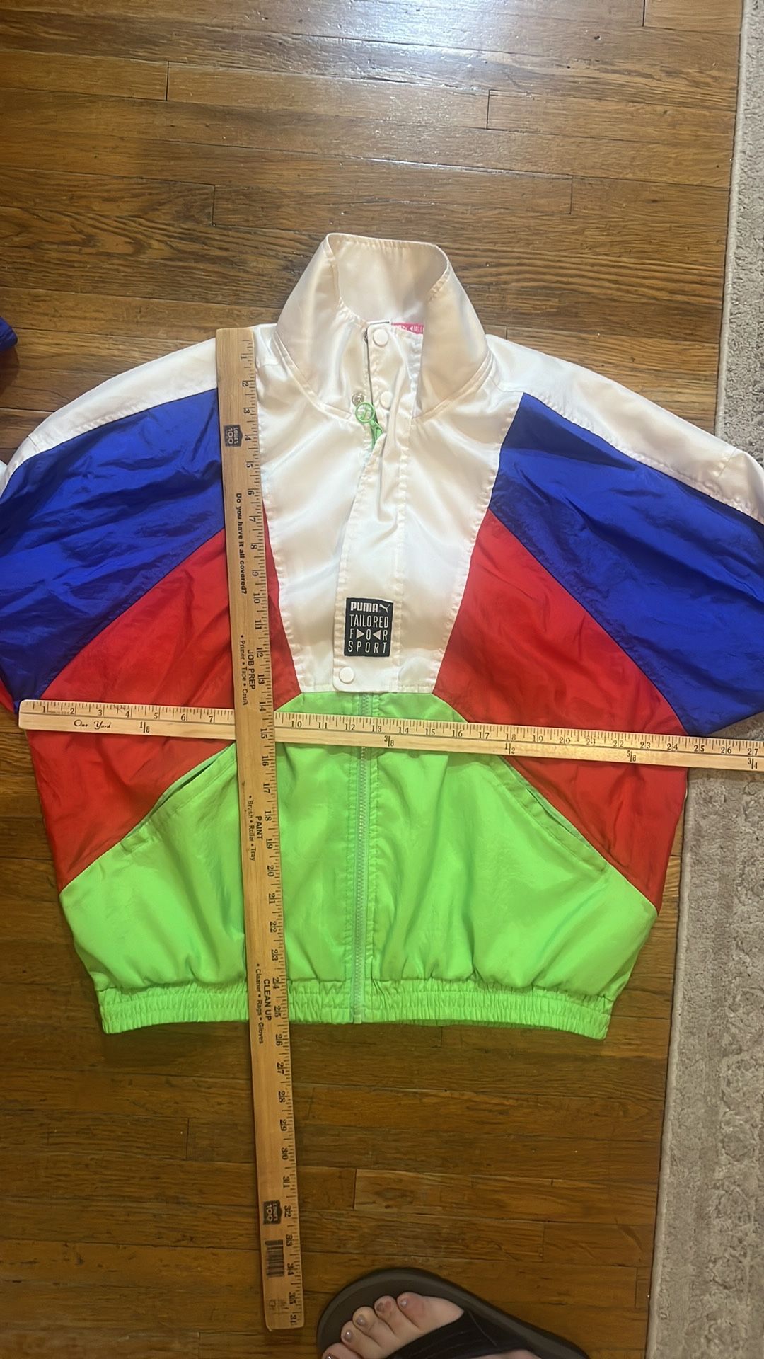 Puma TFS OG Track Jacket Windbreaker No rips has a small hole in the front red area and some stains. Please look at pictures for more description.