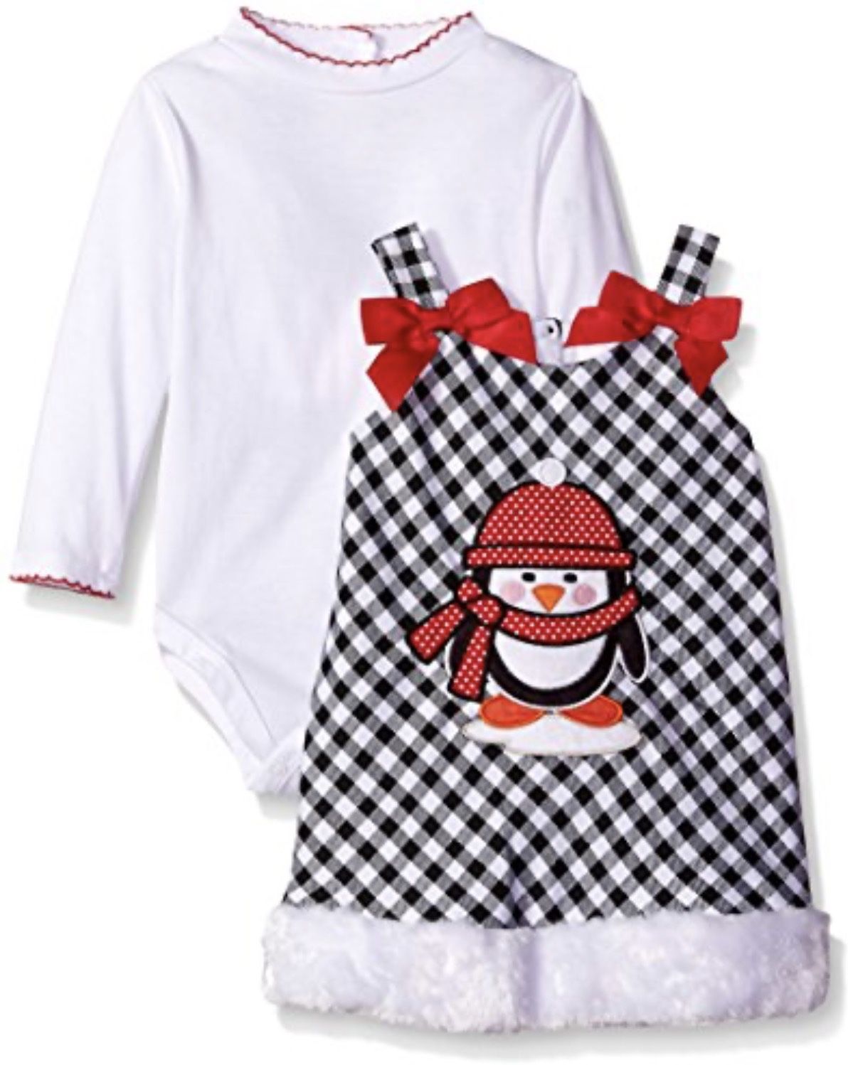 Baby Girls' Plaid Penguin Dress size 2/3T Christmas Holiday Party Outfit