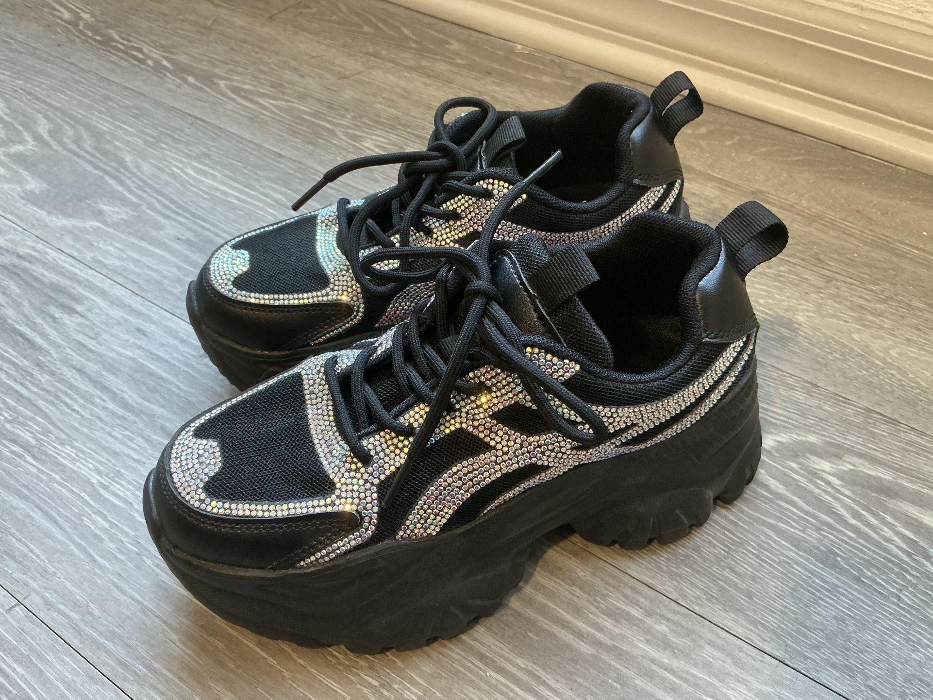 Berness - HANNA 02 Endless Mode Rhinestone Black Platform Sneakers
