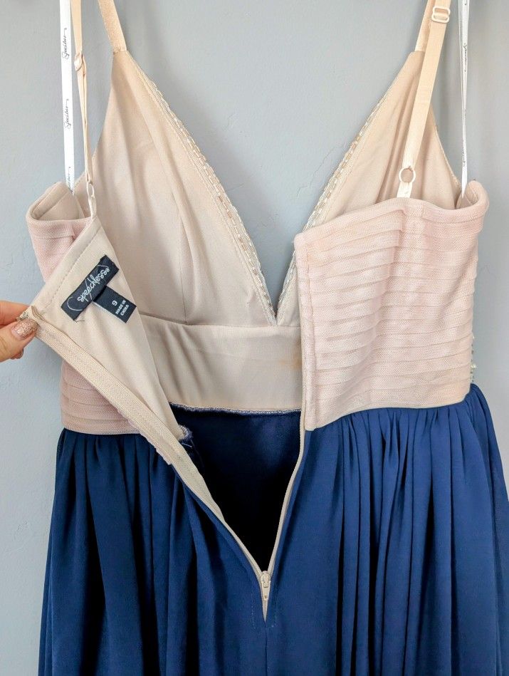 Speechless- Navy blue and cream beaded top dress Size 9 Back zip Professionally hemmed for 5'3" Worn once, cleaned after