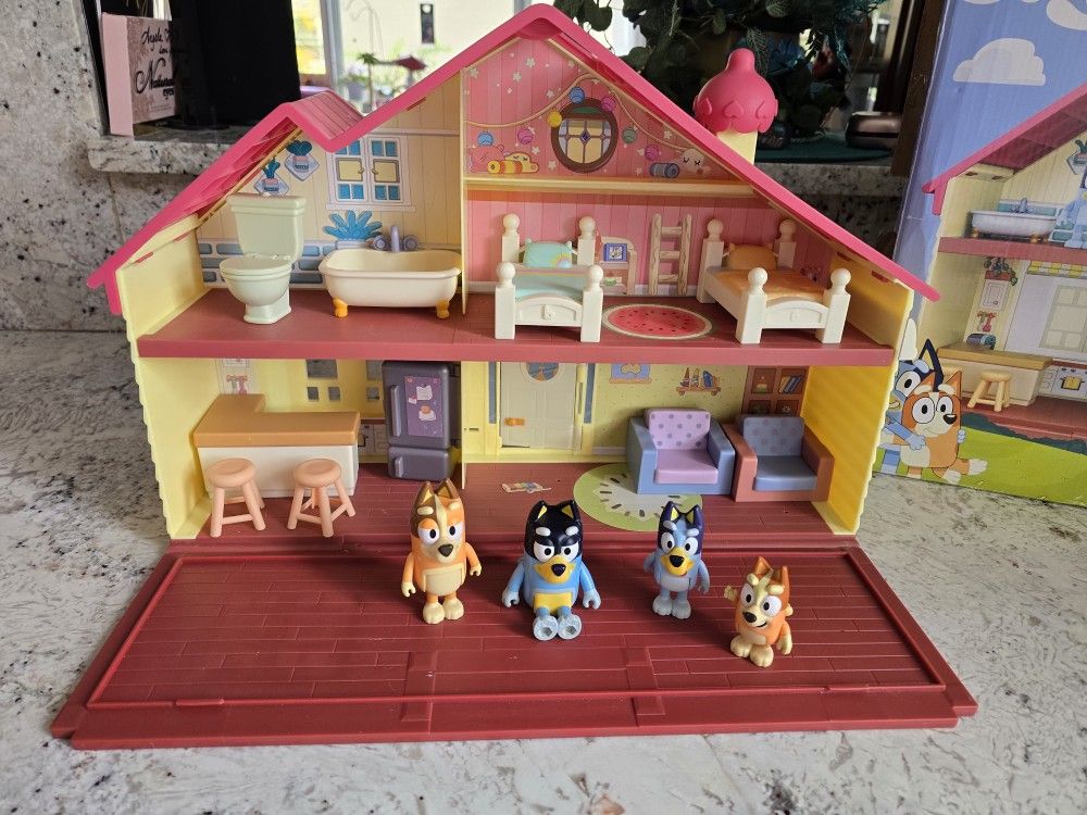 Bluey house and family ( all 4) barely used( 5 times tops) excellent shape!!!LIKE NEW !! Originally goes for 75$ with only Bluey not family. Im selling for $35 FIRM ! brand new condition..only iriginal box is not perfect shape! Please don't try to offer less..im selling at great price thank you