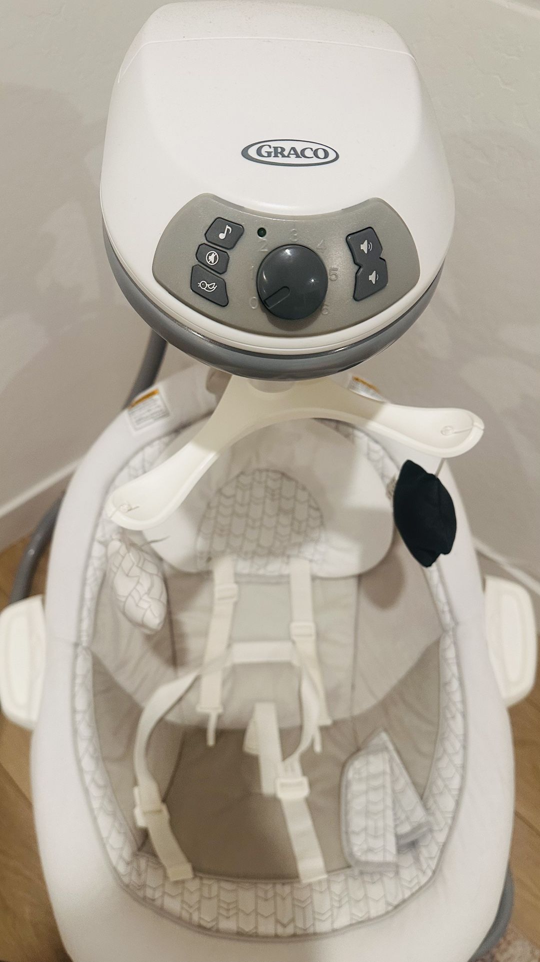 Brand new !!! Not used much. Bought new on amazon a few months ago. Removable swing seat doubles as a portable bouncer, with carry handles to make it easy to move around the home Multi-direction seat allows baby to face right, front, or left for more ways to soothe 6 swinging speeds allow you to find the right pace; 2-speed vibration helps to soothe baby; 10 classic melodies and 5 nature sounds to delight and amuse; Mobile with 3 soft toys keeps baby entertained Roomy seat with head support keeps baby cozy Option to plug in or use batteries makes this swing ideal for any room in the home