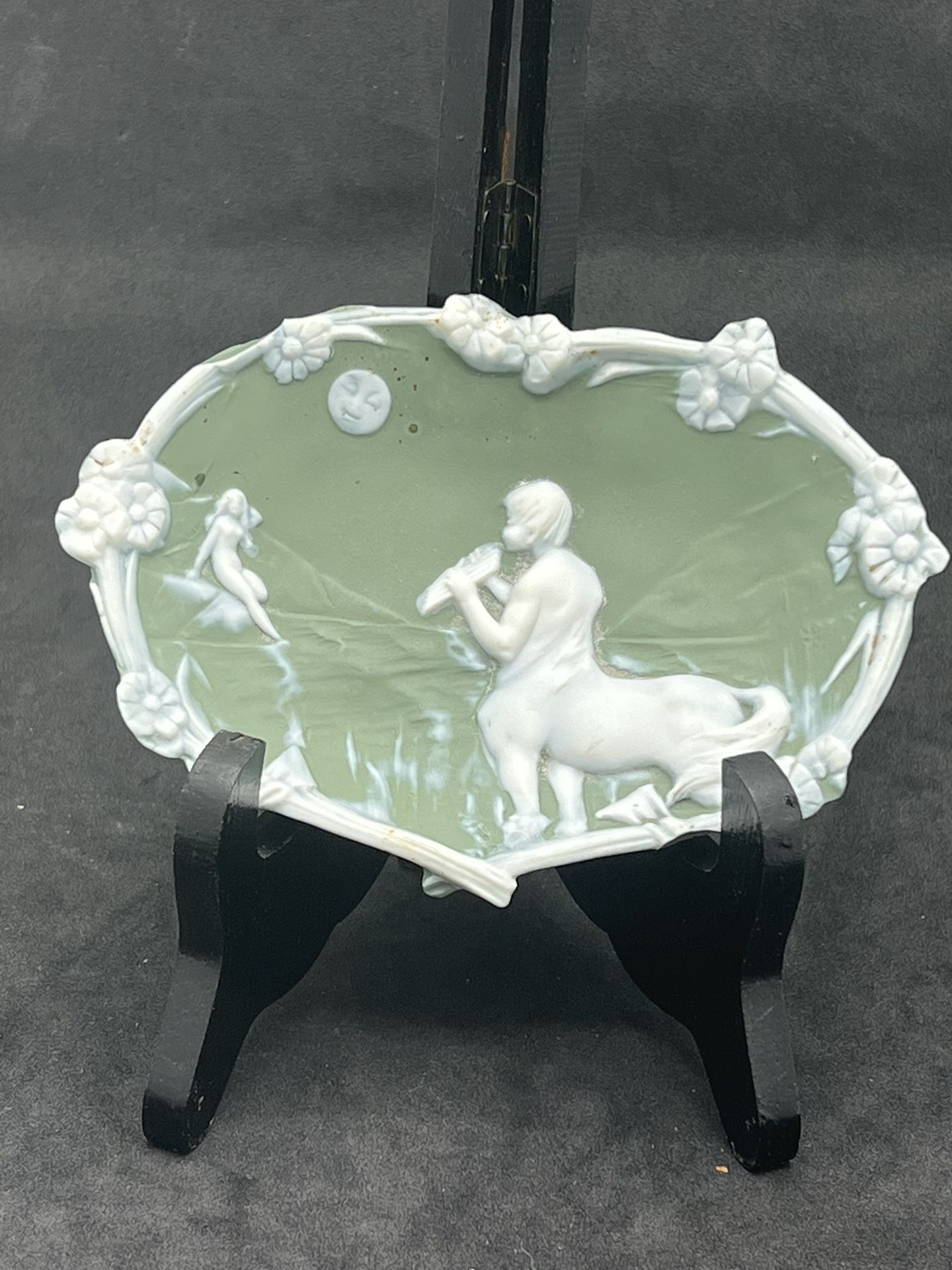 VTG Oval Jasper Ware Sage Green Trinket Dish Oval Shaped Sagittarius Centurion This vintage trinket dish is a beautiful addition to any collection.