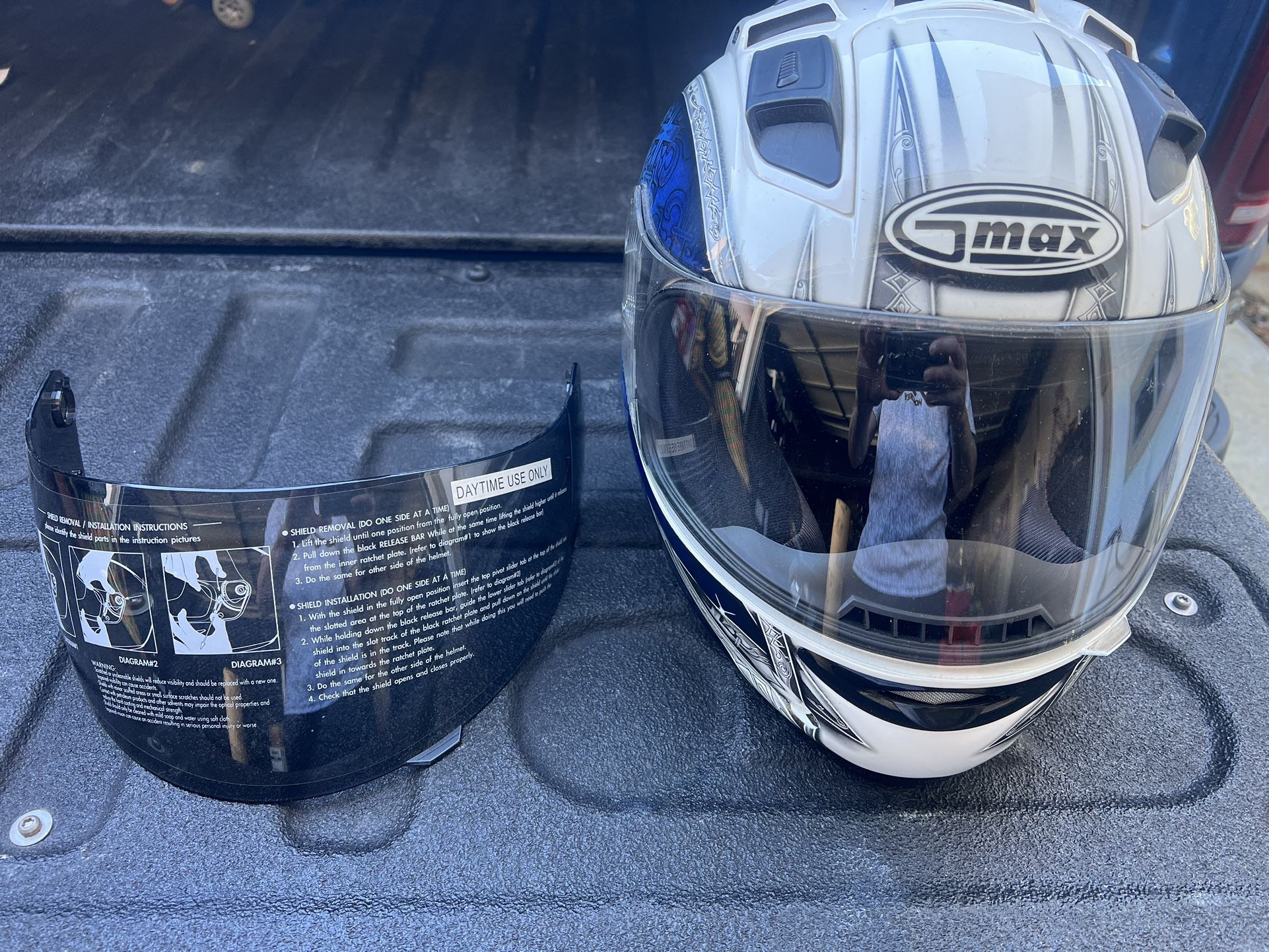 Like new JMAX riding helmet. Comes with extra lens. This helmet is in like new condition and only worn a couple times. The padding is still in perfect condition.