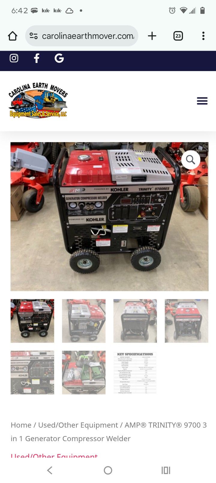 AMP® TRINITY® 9700 is the newest version of the globally patented generator/compressor/welder. This unit is Powered By Kohler® COMMAND PRO 14 HP engine. It is a great tool for construction companies, farmers or ranchers, maintenance crews, assisting them with any job. The TRINITY® 9700 does a variety of basic welding jobs, powered with 110 PSI of compressor strength, and with 5,500 watts of power generation it handles a variety of jobs as well, including: lights, grinder, nail guns, plasma cutter (separate air supply needed) or back up emergency power