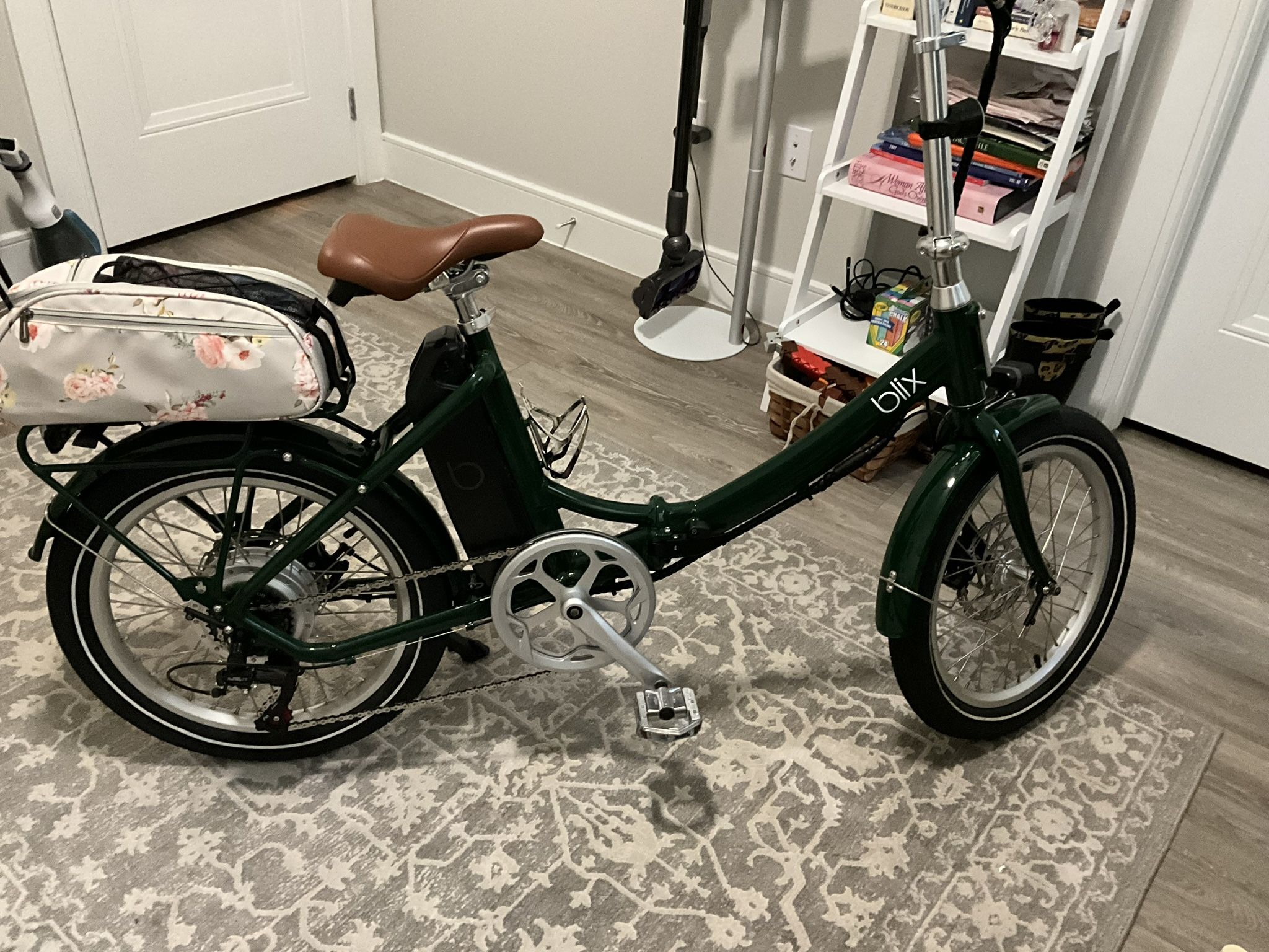 $$$ THIS PRICE IS A STEAL !! $$$ Blix Vika + E-Bike.. like new , barely over 100 miles on it. Folds for easy transport and storage. Racing Green. The Vika+ is a sporty, compact electric bike with incredible performance and unmatched stability. It folds up nicely for storage or travel and has a carrying bag for easy mobility. Bike Type Electric, Folding Brake Type Disc Hydraulic Brakes Yes Terrain Road Riding Style Road Speeds 7 Drivetrain Type Multi Speed Drivetrain Components Shimano Motor Battery 614 Watt-hours Motor Power 500W Motor Range >30 miles (with pedaling) Assist Levels 5 Wheel Count 2 Wheel Size 20 inch Tire Width 2.35 inch Wheel Type Clincher Wheel Material Aluminum Battery 614 Watt-hours Motor Hub Range >30 miles (with pedaling, estimated) Suspension Fork Rigid Intended Use Commuting Age Group Adult Rider Exp. Beginner Gift for New Dads Yes Suspension Type Rigid Frame Material Aluminum Folding Yes Frame Geometry Sport Frame Construction Welded Recumbent No Gear Type External Handlebar Type Upright Handlebar Material Aluminum Handlebar Width 620 mm Saddle Type Comfort Saddle Material Synthetic Saddle Padding High Highlighted Features Disc Brakes Pedal Material Aluminum Pedals folding Seat Saddle Lights Yes Incl Accessories USB charger on the display, bell, folding pedals, front and rear lights, magnets on the axels, metal fenders, puncture-resistant tires, rear rack Incl. Acc. Bell Compat Accessories Blix aftermarket accessories Supp. Acc. Rack Meet in Arlington for pick up. CASH ONLY. X-posted.