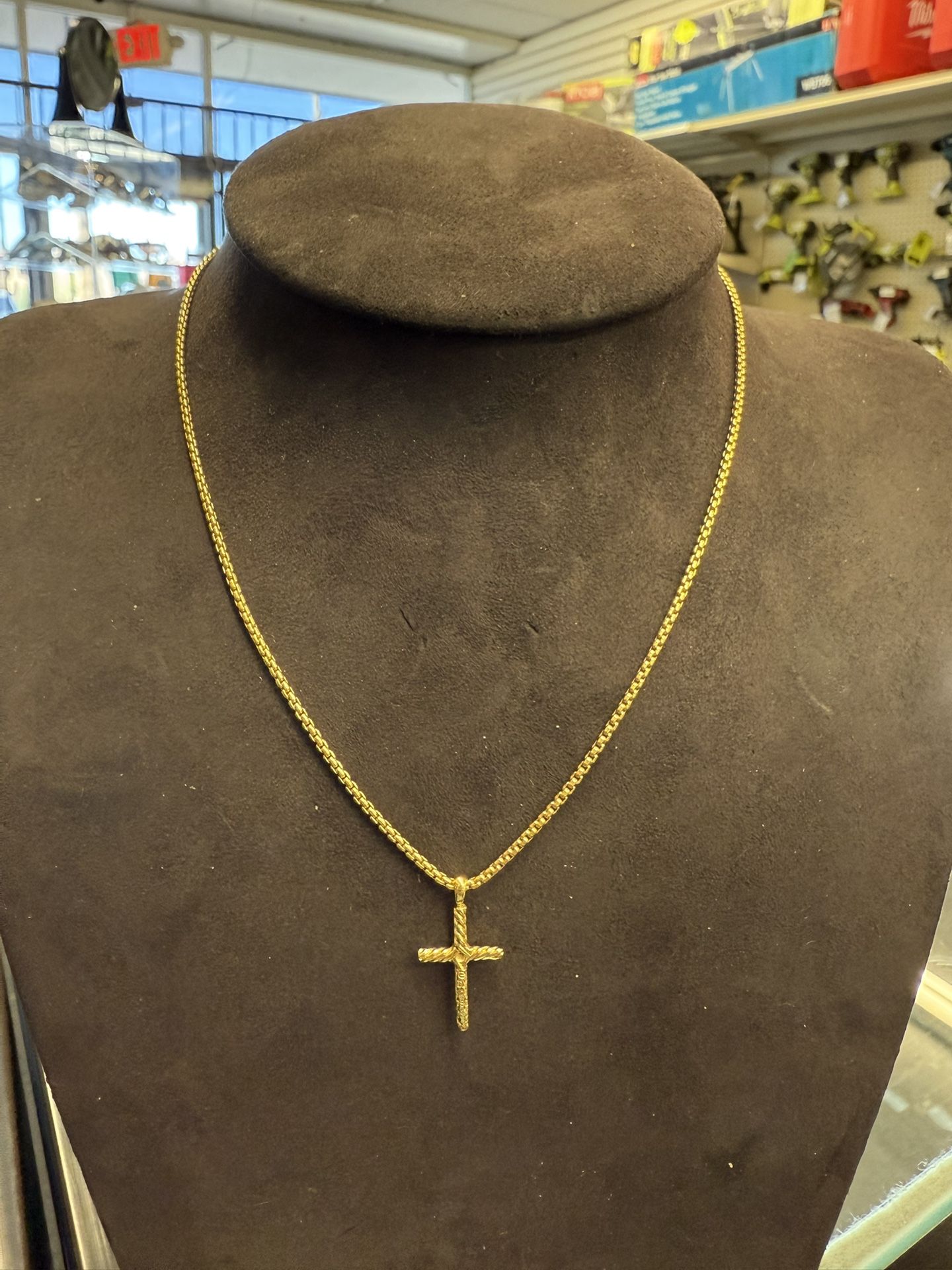 18KT Solid Box Chain W/ Cross Pendant 41176-1