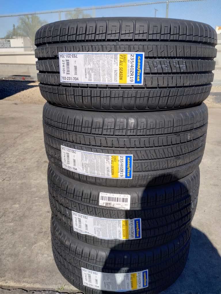 $650 set of four tires new Goodyear 235 40R19 install mount and balance financial services available no credit need