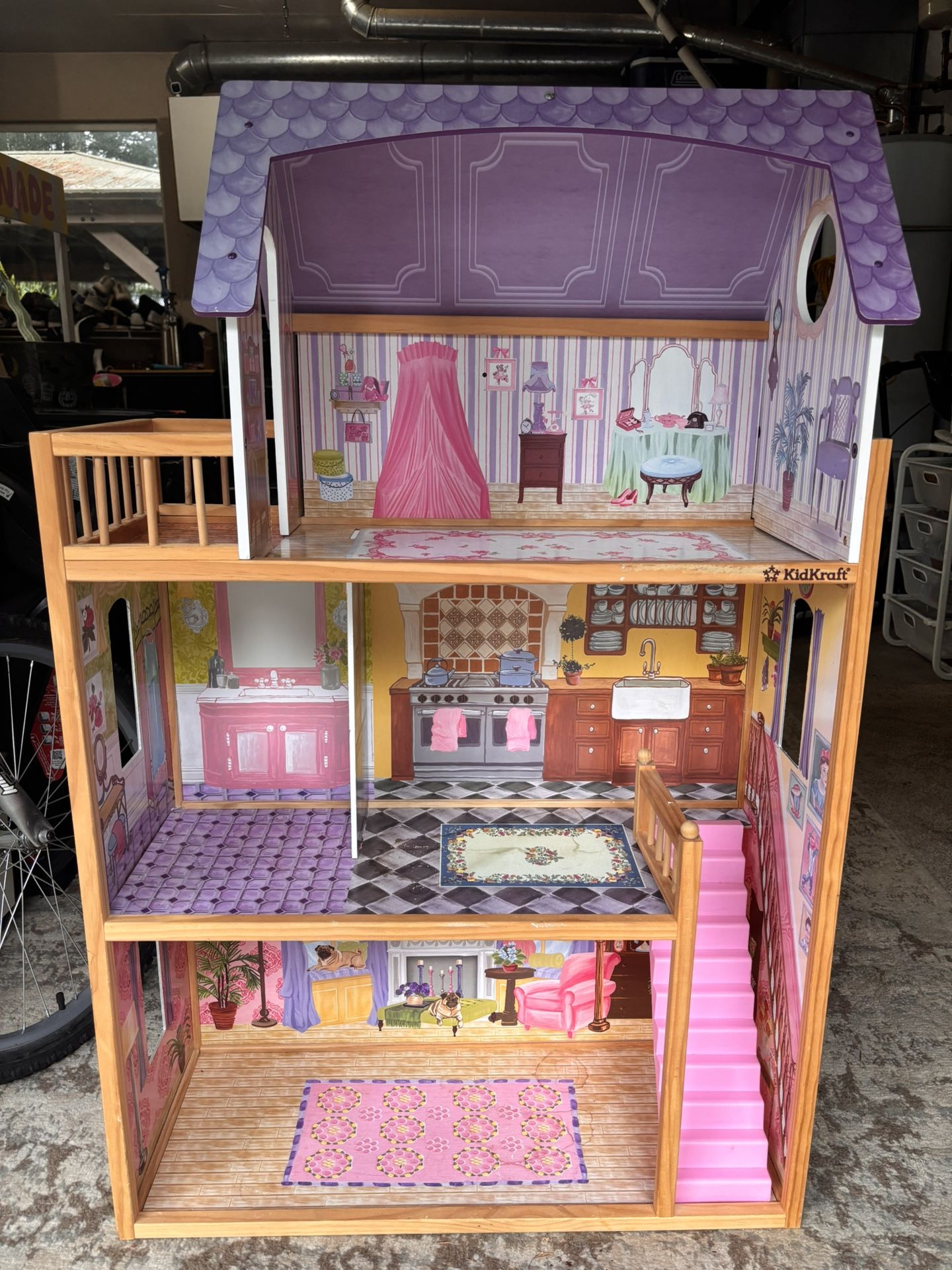 Wood Barbie House 45in tall by 29in wide Has a few stains on the floors shown in photos. Porch Pick Up Remington Neighborhood near Druids Glenn Golf Course