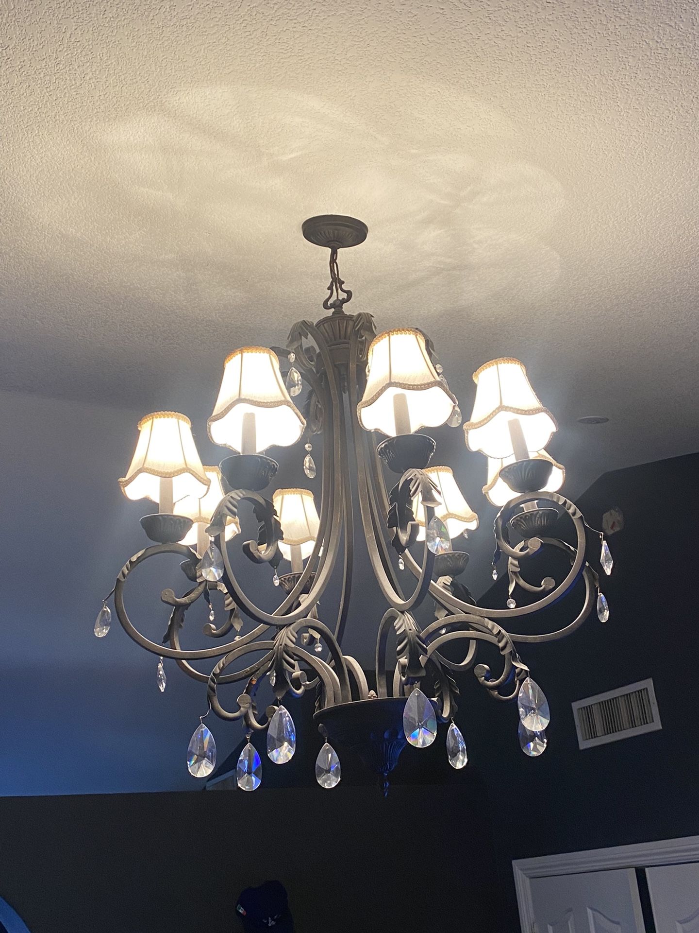 Very nice heavy light fixture. I went with a ceiling fan instead. In perfect condition. Dimmable lights $300 obo Need it gone