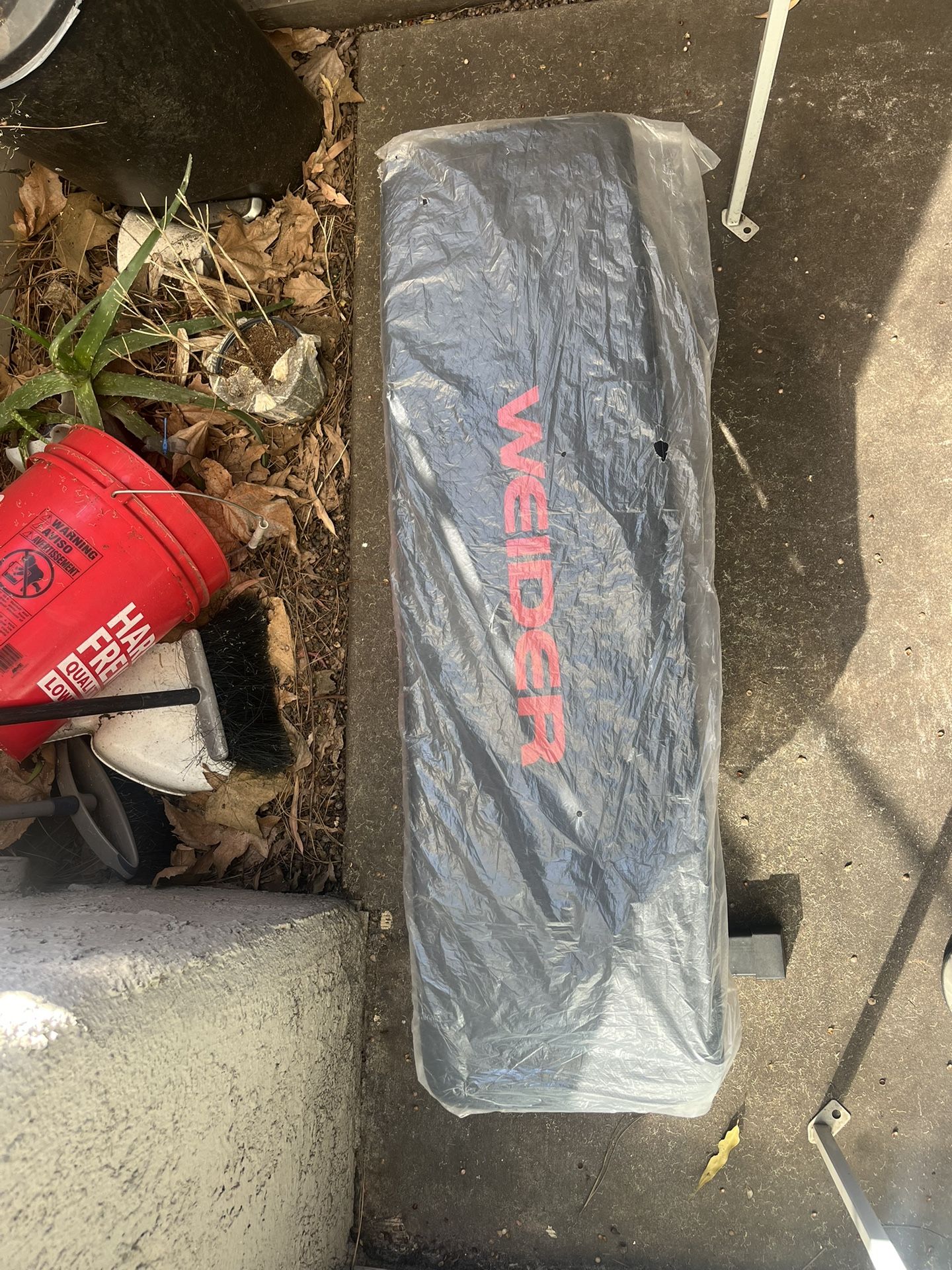Weider flat bench, stored outside under a tarp. Has the original plastic it came in wrapped around it because it’s been used and stored outside so the bench padding and material itself is in great condition, no tears. Weight capacity is 350lbs and it’s about 4.5ft long. PICK UP ONLY