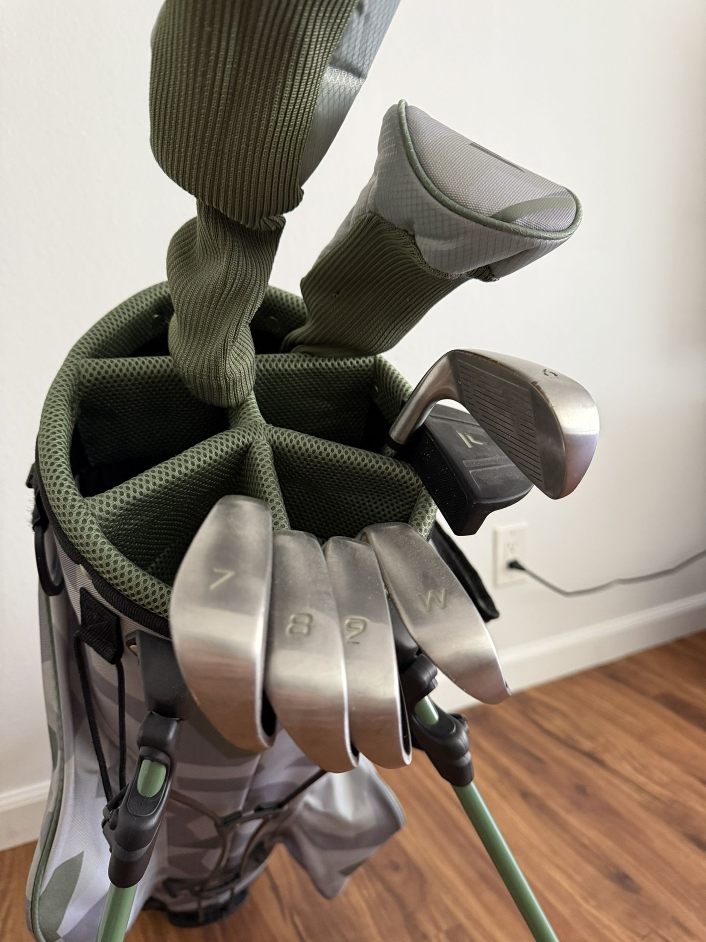 Basically brand new Top Flite starter set. Missing 3 wood but includes: Driver, 5H, 6-9 Iron, wedge, and putter. Used only a couple of times so minimal wear.