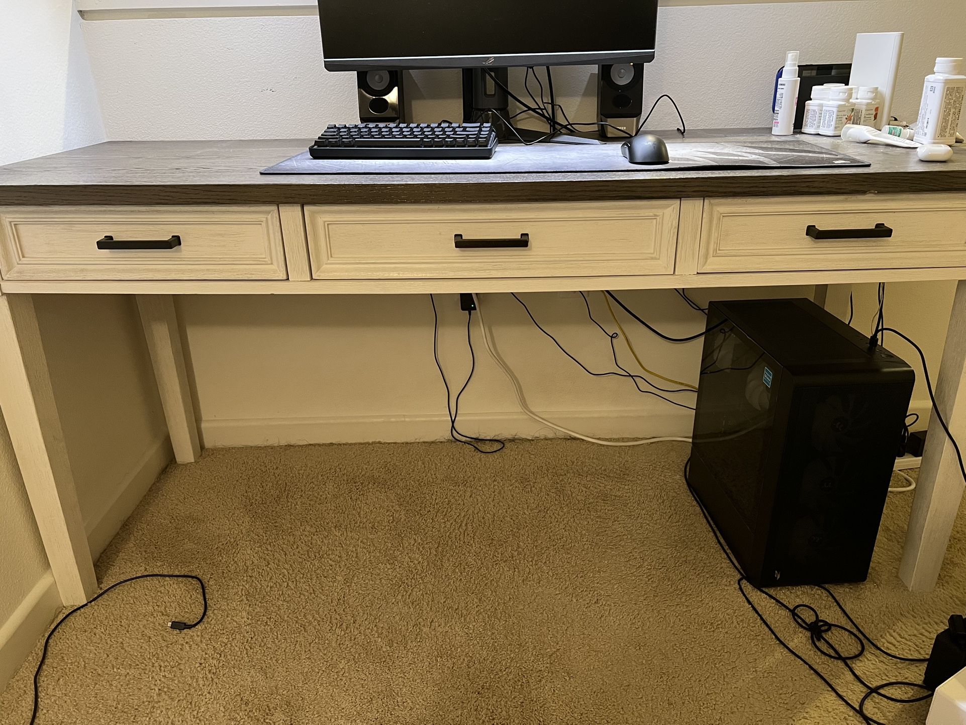 Bought from Living Space, used less than 2 years. Since I’m moving on 5/27, the item will only be available for sale until 5/26. Buyers will need to pick them up themselves. Original price: Aberdeen 66” Writing Deck: $595 Zeus Gaming Chair: $350