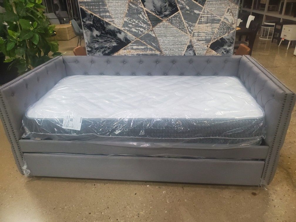 Beautiful Gray Tufted With Nailheads Twin Daybed (New)..Mattress Not Included