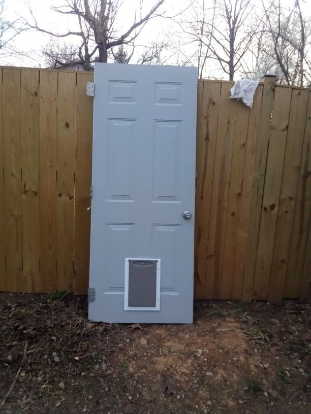 Ext metal door by Masonite with pet safe door flap. 32x79 in. Right hand door swing. Like new condition $115/obo