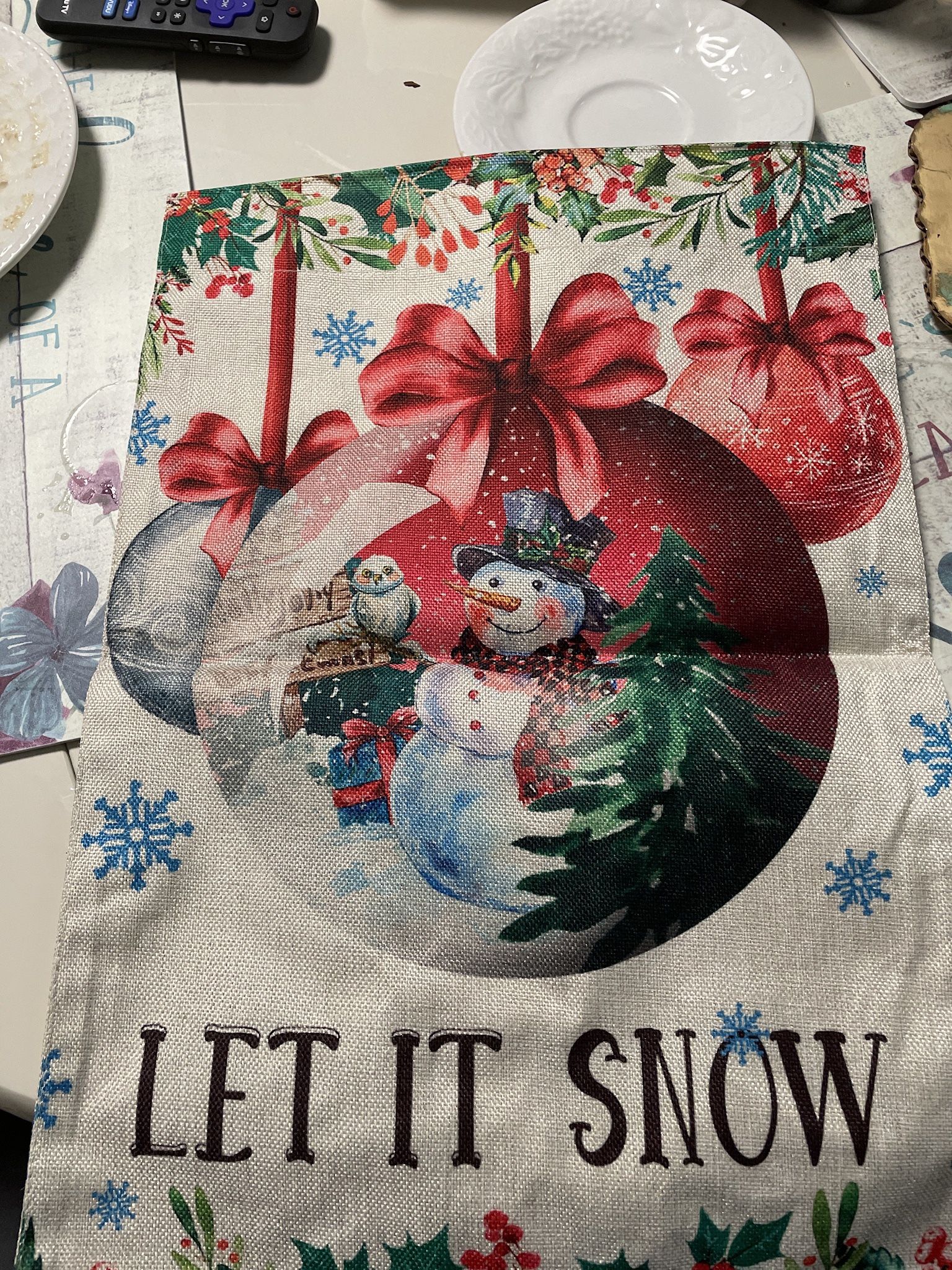 Lucky Taft snowman Christmas garden flag, burlap yard double side, winter snowman with Christmas ball farmhouse outdoor decor, small Christmas flag 12”x18”