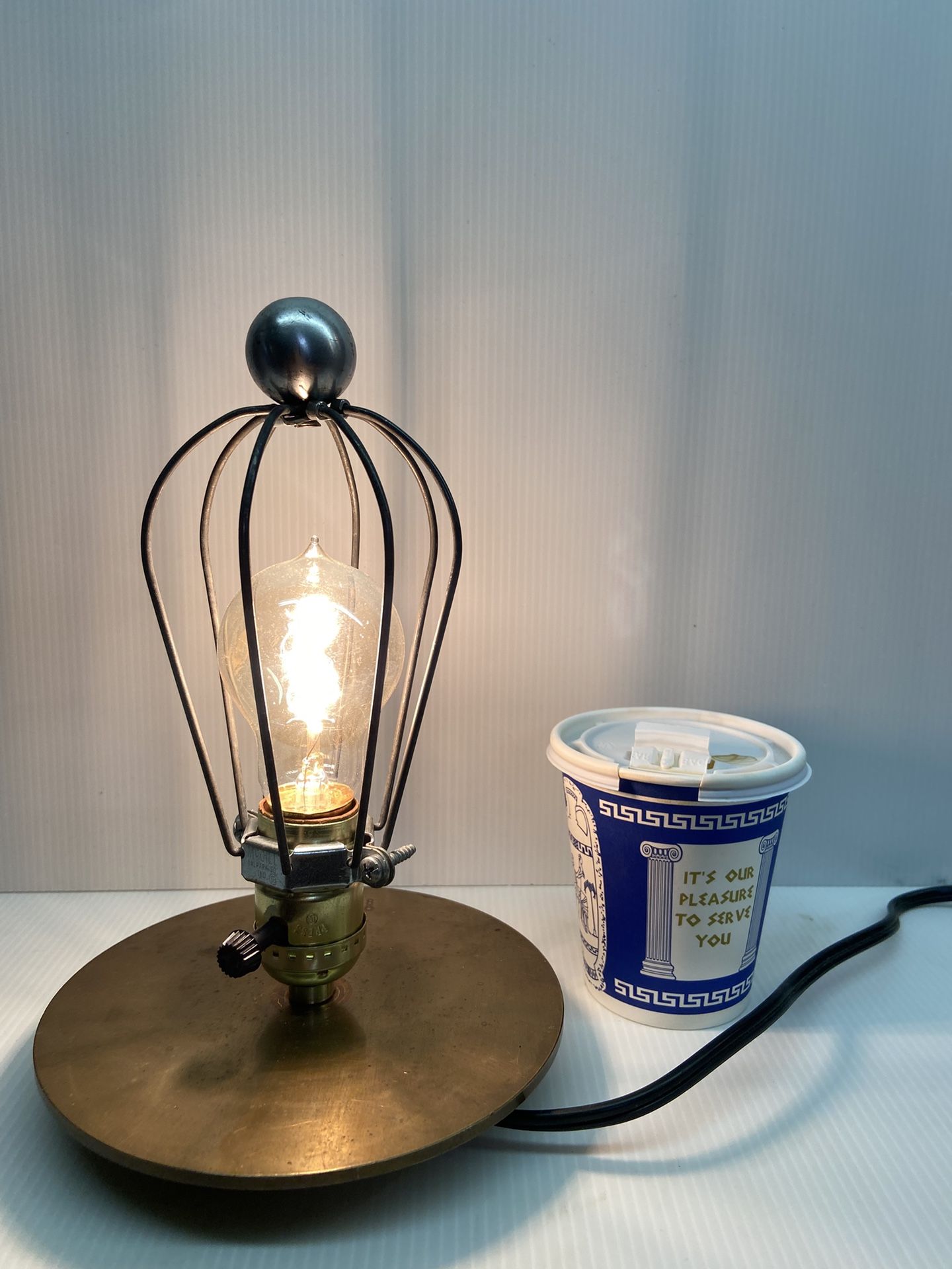 B” tall base is 6.5” diameter a steam punk retro vintage antique steampunk lamp cage light reworked rewired