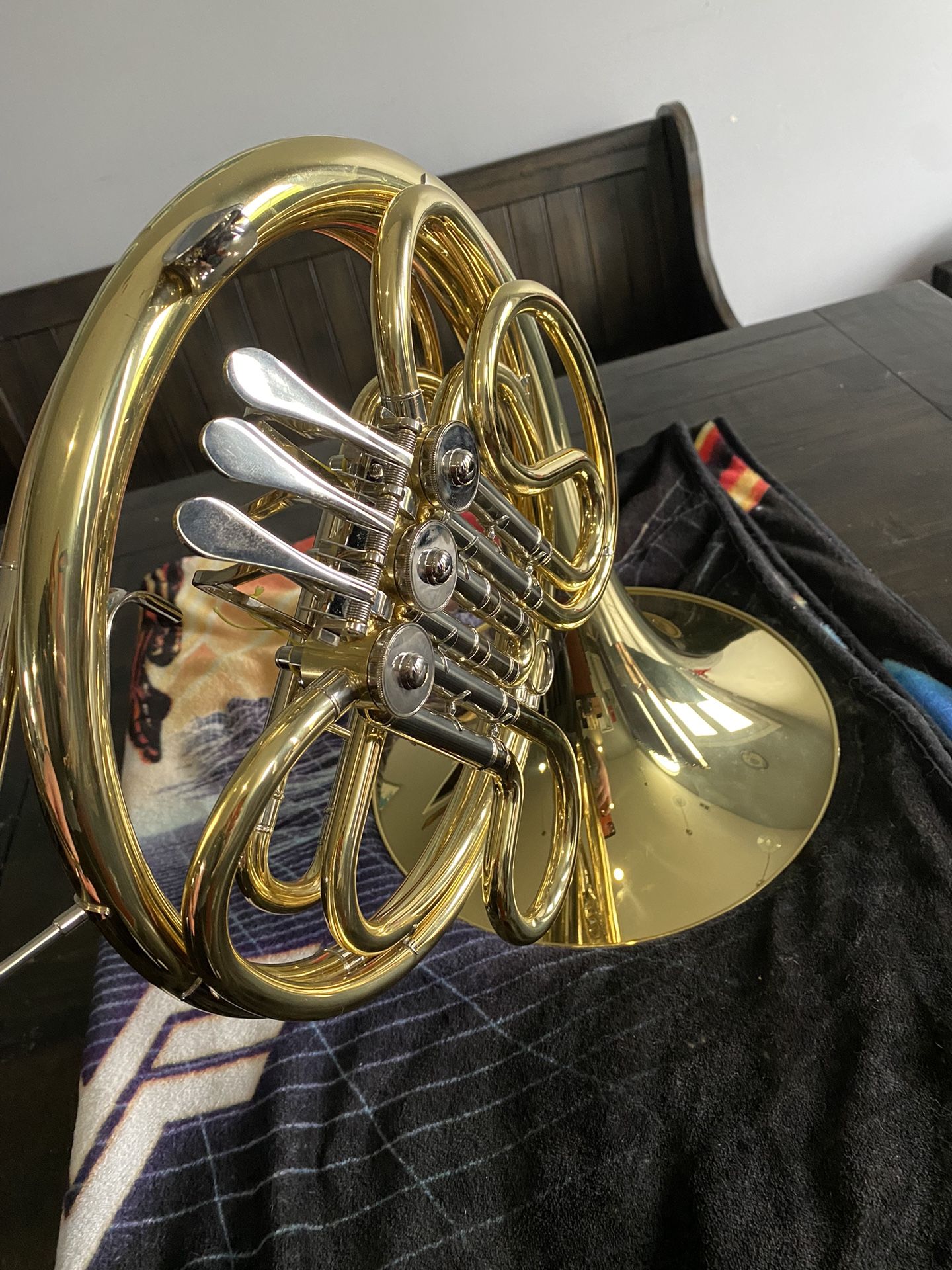 Yamaha 314II French Horn Used as a new student horn for one year Great shape Case included Per Yamaha - “The 314II single horn features a rich, warm tone, superb flexibility, an easy response, and accurate intonation balanced through the entire range. An Eb extension tuning slide is optionally available with this instrument. Using this slide, the player can perform music written for Eb horn without having to transpose.”