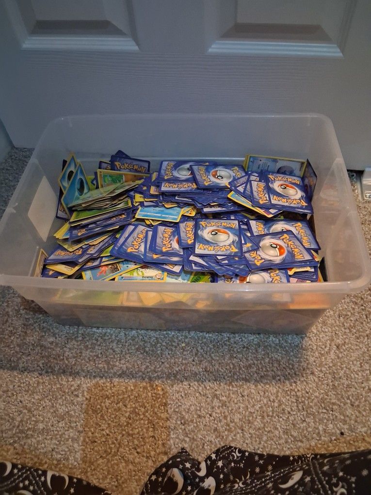 Old Pokémon cards I dont ship Cash only Whole tub is worth $85 Holos are worth at least $70