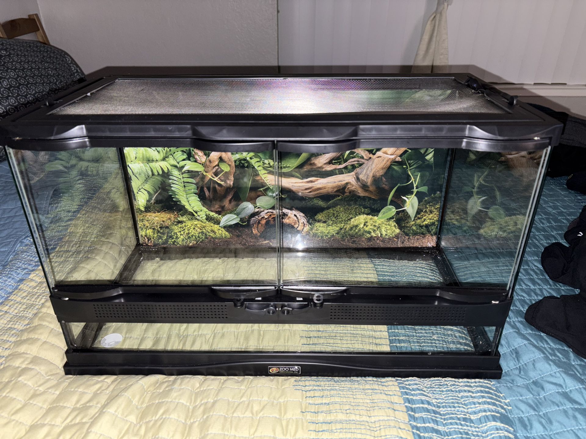 Front opening reptile tank. Plastic on top is melted a little from a heat lap. Otherwise in great condition.