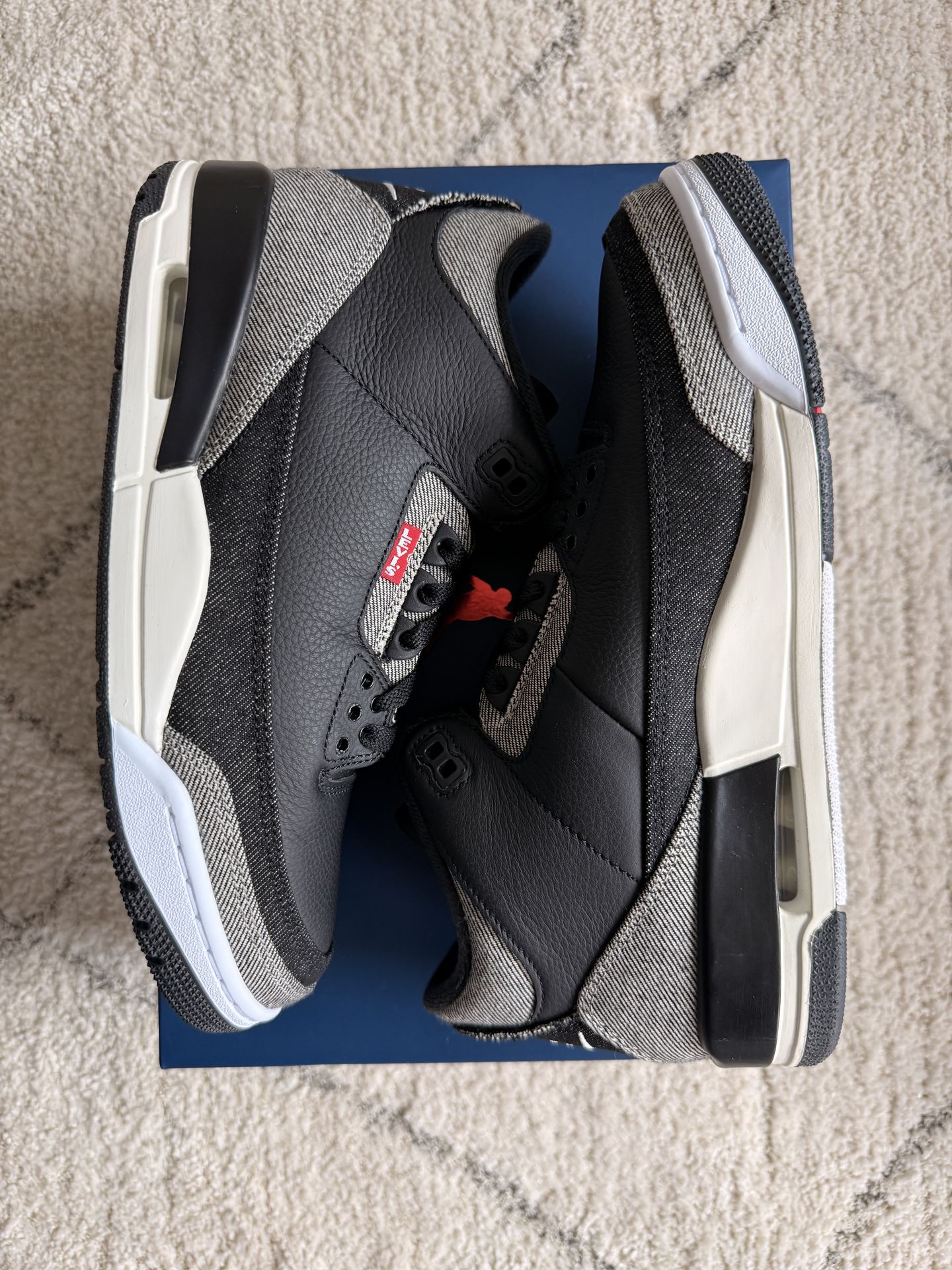 BRAND NEW NIKE AIR JORDAN RETRO 3 LEVI’S BLACK SIZE 8.5 Purchased on the Nike App Memorial/ City Centre area